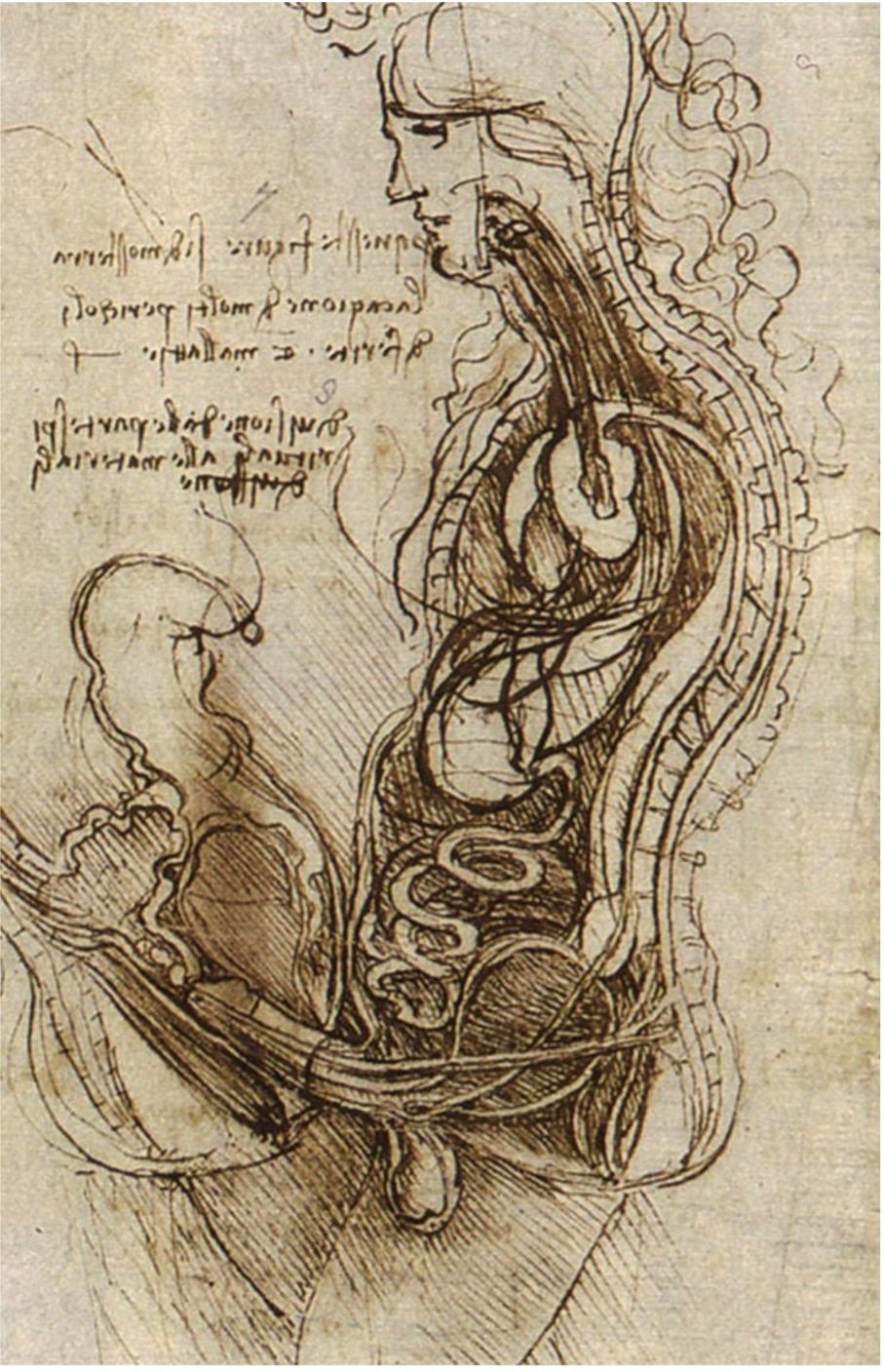 The obstetrics world had proposed any number of theories to explain the disease, and any number of attempts to treat or prevent it. With no concept of a germ theory of disease and a new reverence for anatomy, many physicians wanted to attribute the problem to some internal female structure. This was supported by long-held descriptions of breast milk as a transformation from menstrual blood, a physiologic theory handed down from Aristotle and Galen. Leonardo da Vinci proposed an anatomic explanation for this belief in his famous “coitus drawing,” which shows a duct connecting the woman’s uterus to her nipple—a duct necessary to explain the Galenic theory of milk production, but not a structure that exists in a woman’s body.